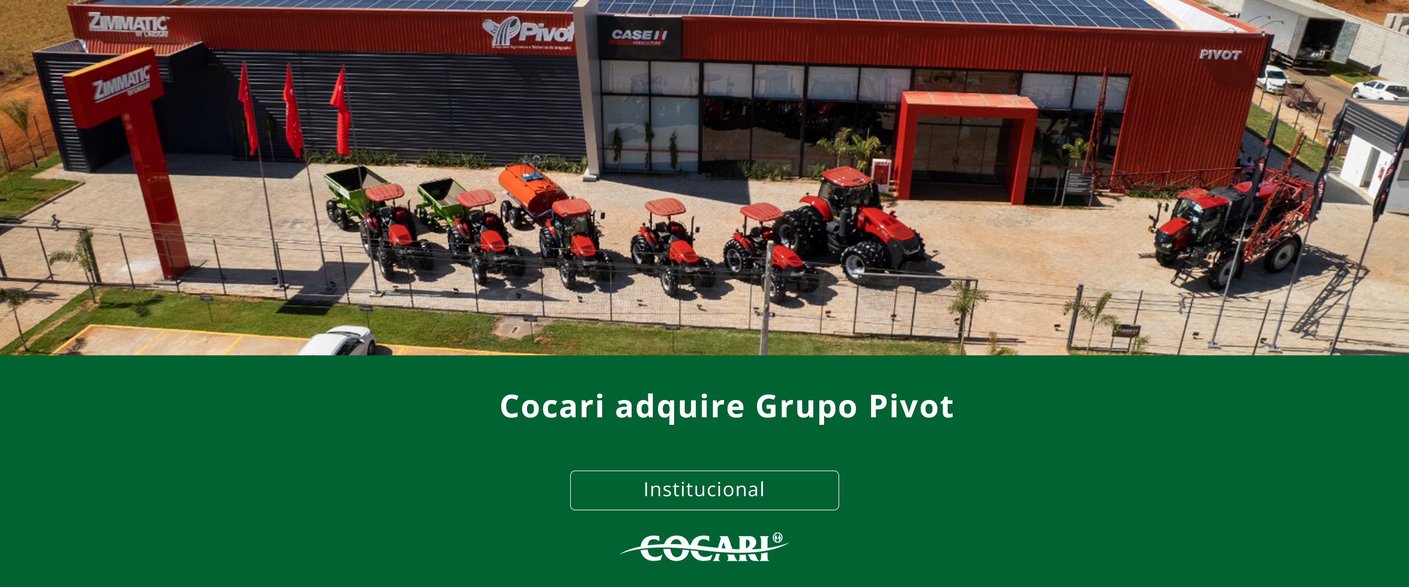 Com a aquisição de 8 lojas nos estados de Goiás e Minas Gerais, a Cocari passa atuar como uma das maiores concessionárias Case IH do país. A operação marca também a entrada da cooperativa no segmento de pivôs centrais Zimmatic para irrigação, passando a contar com 12 lojas que também incluem os estados da Bahia e Tocantins.