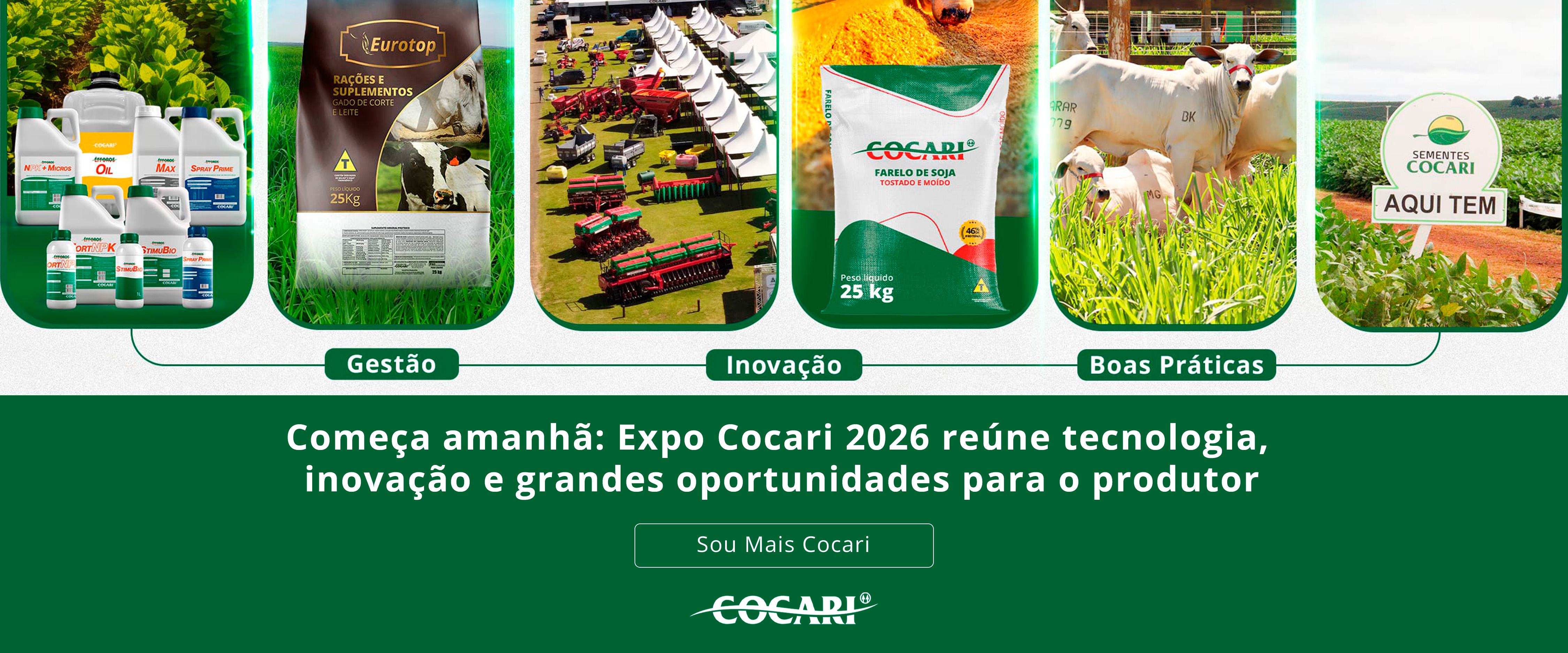 A Expo Cocari é um ambiente de encontro, troca de conhecimentos e geração de valor. Tecnologia, inovação, sustentabilidade e negócios caminham juntos para apoiar o produtor em decisões mais estratégicas e seguras.